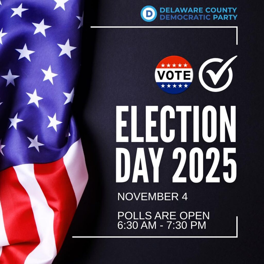 Today is Election Day! Polls are open from 6:30 a.m. to 7:30 p.m., and every vote truly matters in shaping the future of Delaware County. We have Democratic candidates running for school boards, city councils, township trustees, and the Delaware County Municipal Clerk of Court.